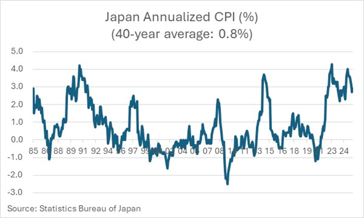 This is not necessarily a bad thing, as Japanese fiscal and monetary authorities have been trying to generate inflation for the better part of 30 years. It appears that the COVID supply shock and subsequent fiscal stimulus have finally led to a sustained shift in the inflation regime.