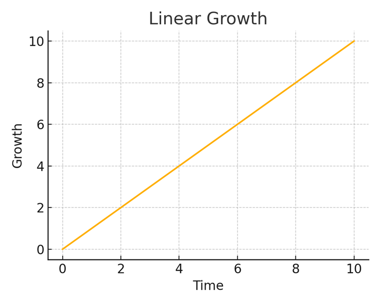 Learning grows linearly when we are memorizing discrete facts, like when we drill vocabulary for a new language. For every hour I study, I learn 10 new words or whatever the case may be.