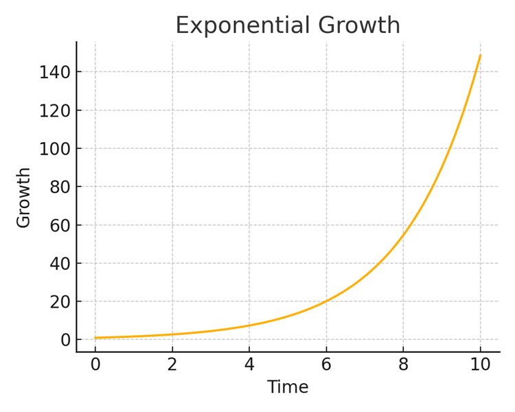 First, starting early (or now) offers big benefits. Quadratic, exponential and logistic growth all require time in order to hit the sharp upward-sloping parts of their growth curves. Building an early foundation and then continually reinvesting yields large gains.