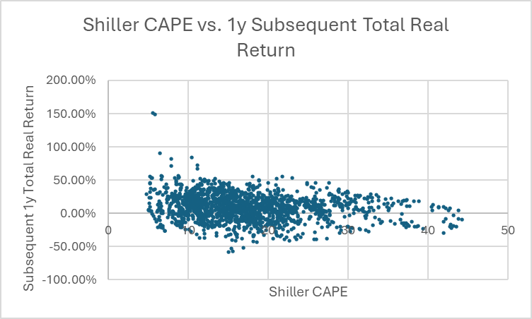 The Shiller CAPE is a reasonably good long-term valuation metric, but a terrible timing tool