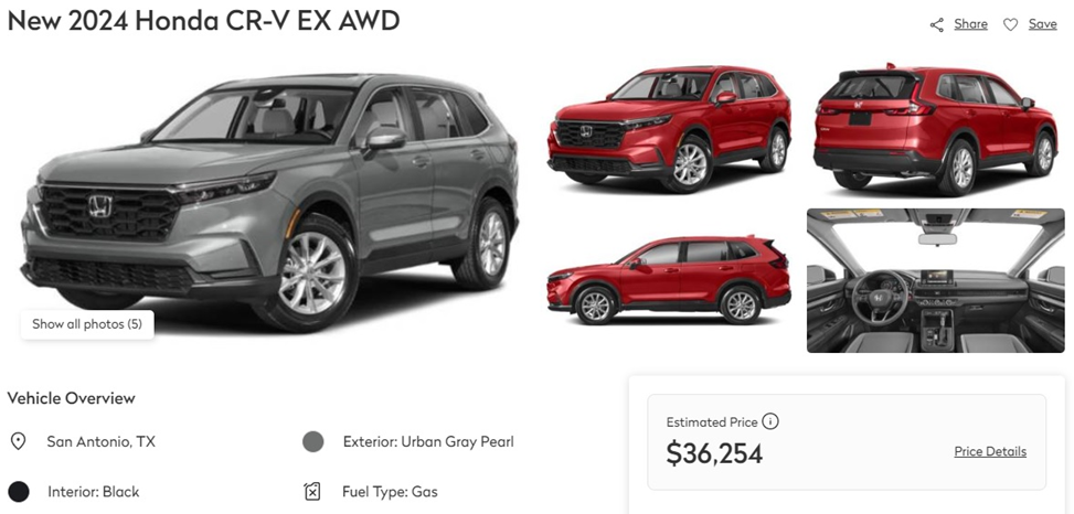 Argonne estimated that a gas small SUV would cost $26,051 in 2025 while a BEV300 would cost $46,031. To test this, I looked at two popular small SUVs that I assume are roughly comparable (dunno, I’m not a car guy): the Honda CR-V EX and the Tesla Model Y. Here are the prices today: